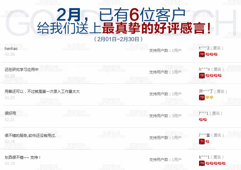 在这个月里面,我们也收到了很多新客户的使用评价,详情大家点击下面的链接,去查看哦!